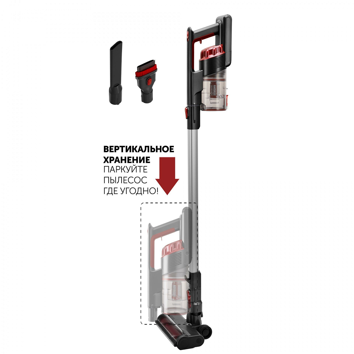 Беспроводной пылесос 3 в 1 – вертикальный, компактный, 3 насадки.Время работы без подзарядки до 40 минут.