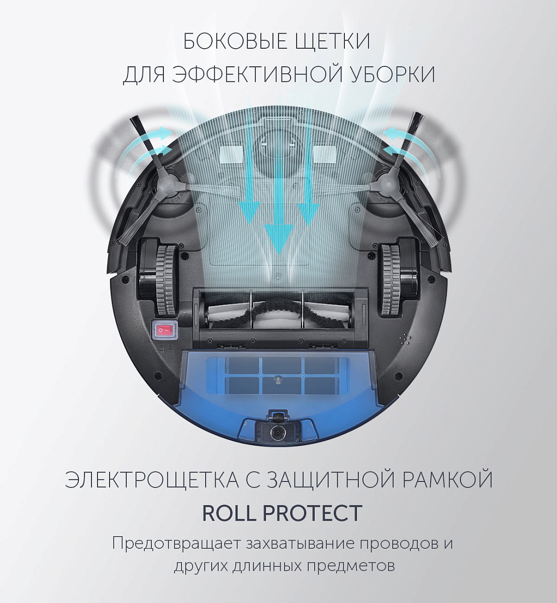 Боковые щетки для эффективной уборки.