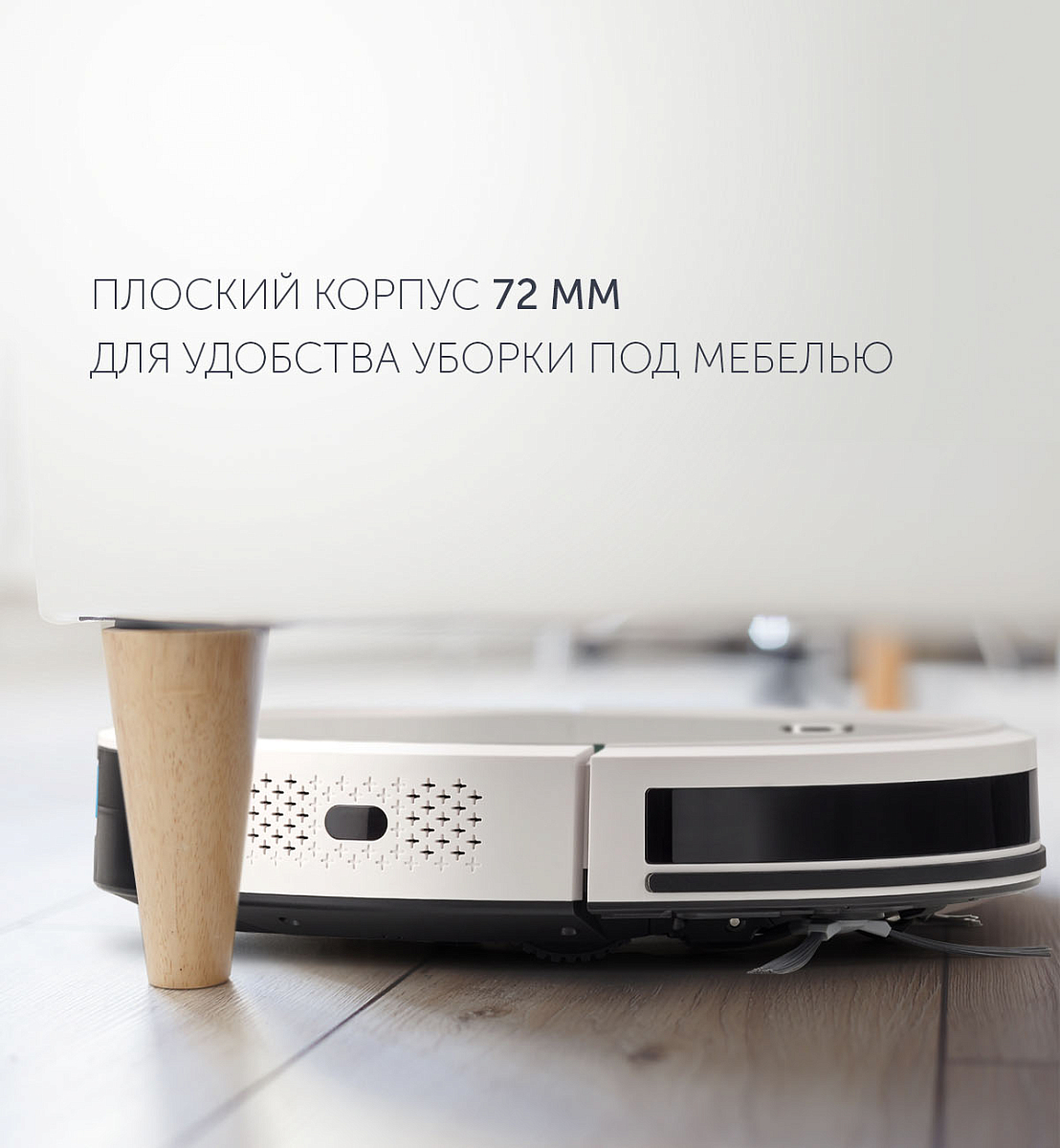Плоский корпус (72 мм) для удобства уборки под мебелью.