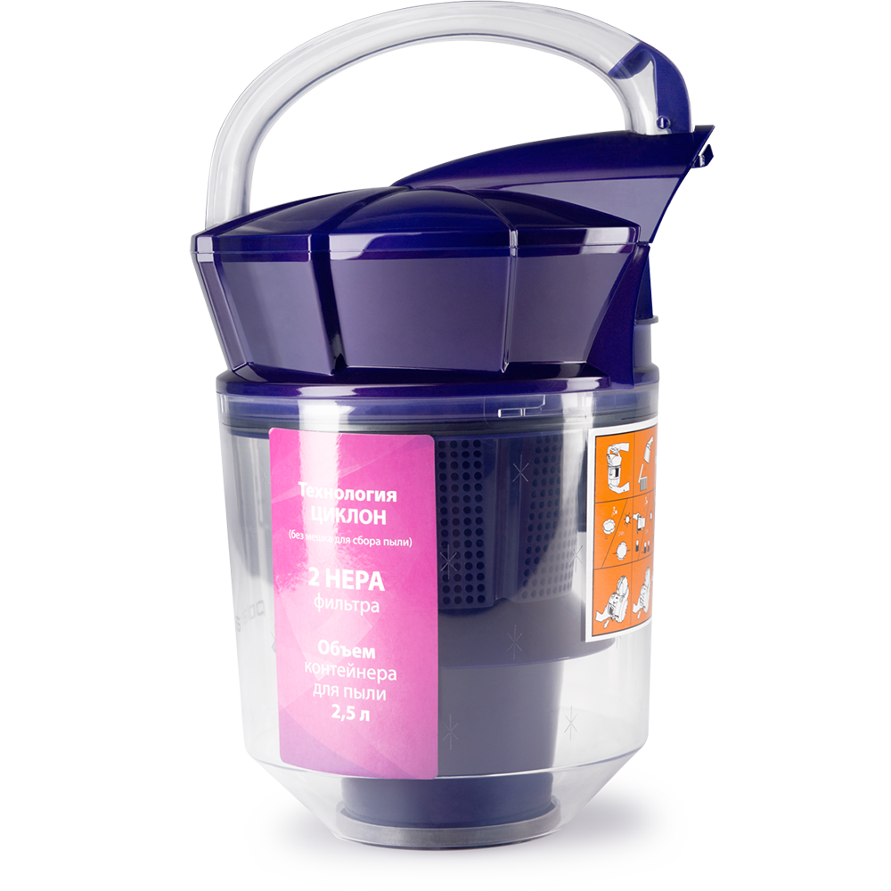 Объем контейнера для пыли – 2,5 л (без мешка для сбора пыли).