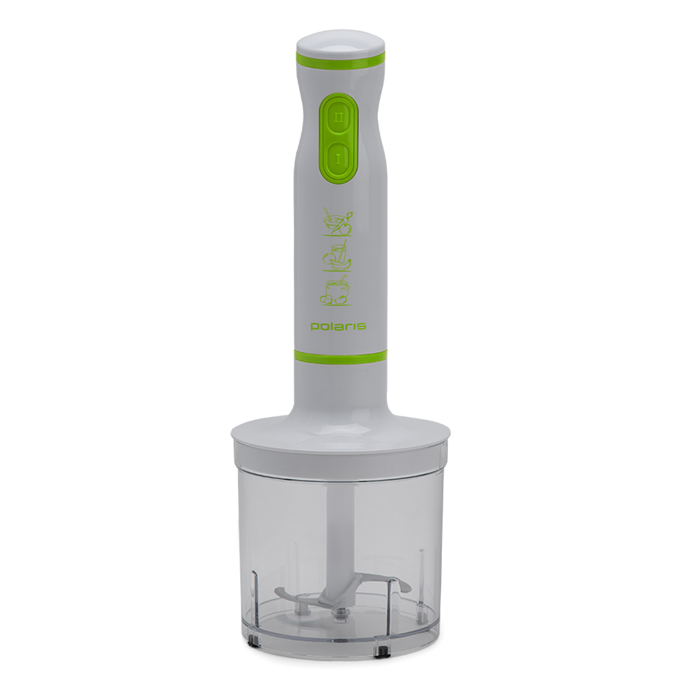 Блендер Polaris PHB 0528 green с двумя скоростными режимами станет незаменимым помощником на вашей кухне. В наборе к нему прилагаются: миксер, мерный стакан и измельчитель. Специальная форма ножей