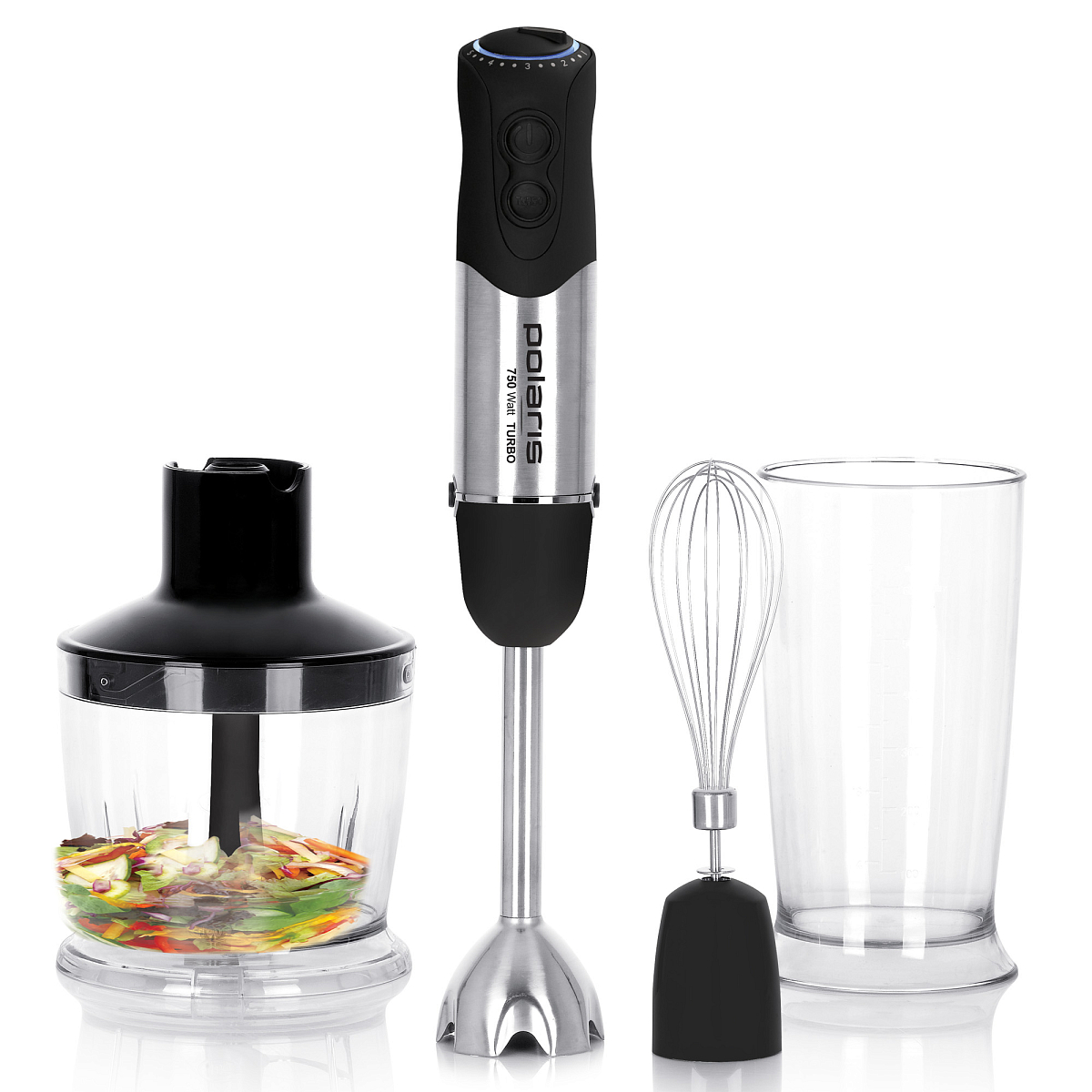 Блендер POLARIS PHB 0713AL работает тихо и оснащен программой плавного изменения скорости. Он порежет жесткое мясо и сырые овощи за несколько секунд, так же быстро он взобьет яйцо или крем. Имеет режим ТРУБО, с помощью которого можно моментально измельчить, перемешать или взбить продукты.