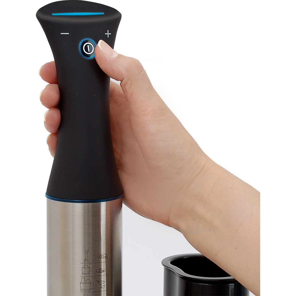 отличная цена, удобство использования, ничего лишнего в комплекте, насадка для пюре не из пластика , а из нержавеющей стали, очень удобная насадка блендер - не засоряется, быстро получается суп пюре, мощный. Мерный стакан удобный - я прямо в нем взбиваю венчиком и ничего не разбрызгивается. Есть удобные прорезиненные подставки против скольжения. В измельчителе получается идеальный фарш.