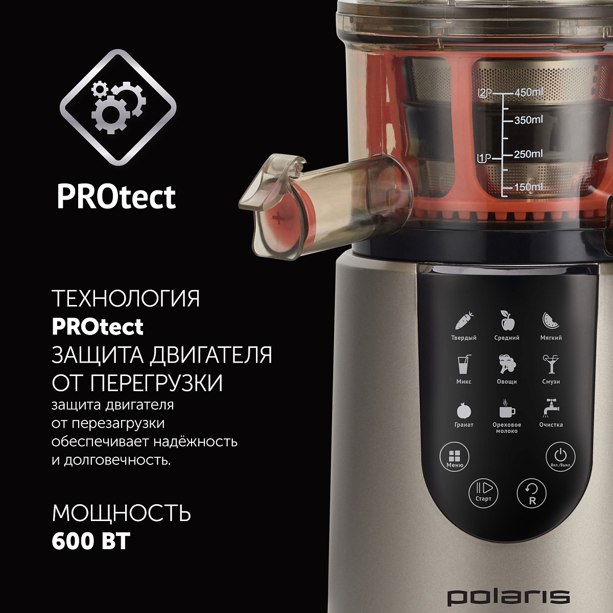 Возможность приготовления соков из самых разнообразных продуктов растительного происхождения, различной твёрдости.