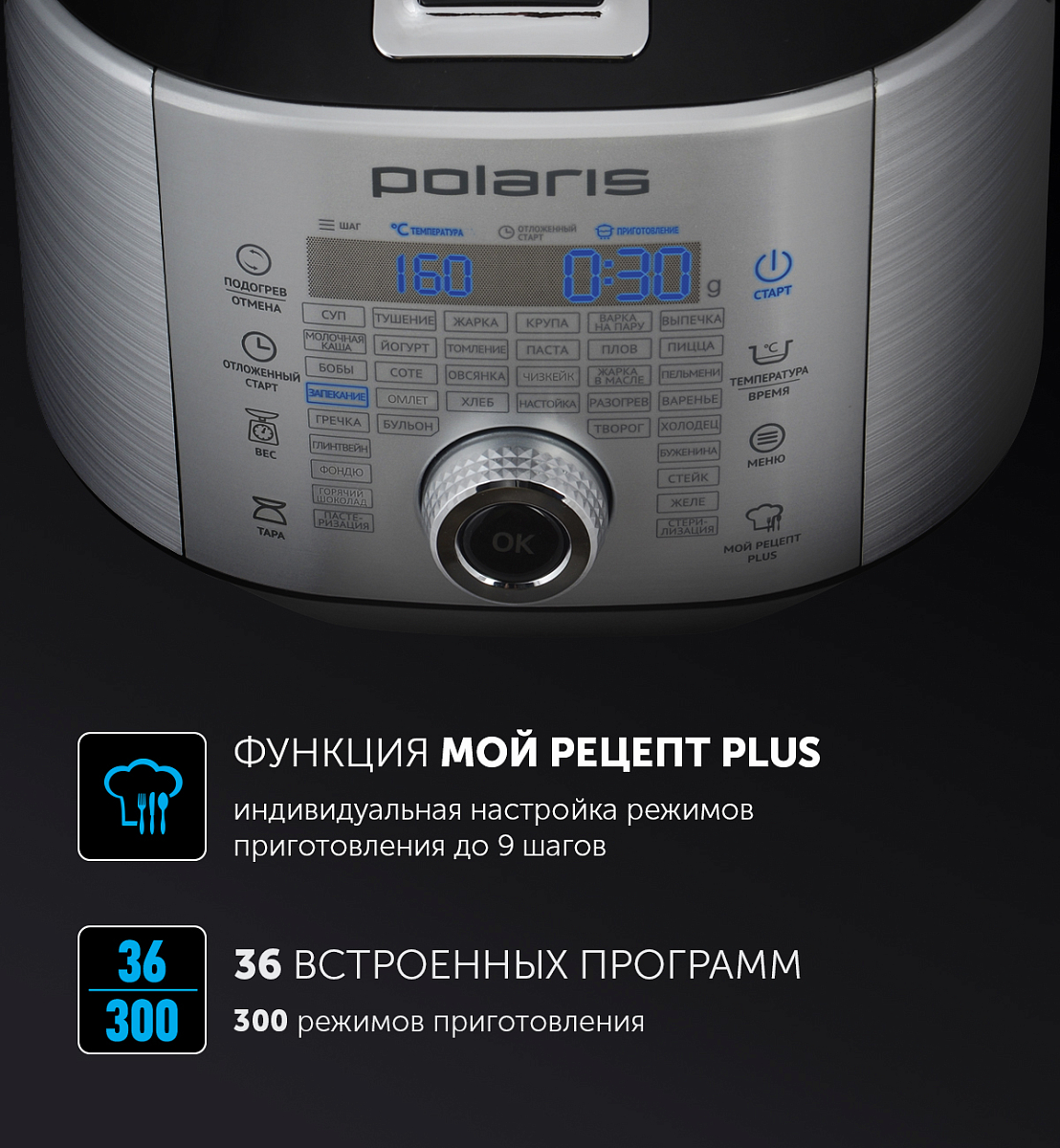Встроенные весы.300 режимов приготовления с функцией - Мой рецепт plus.