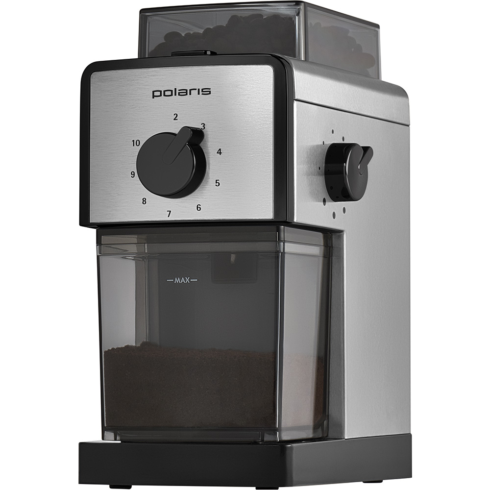 Корпус из высококачественной нержавеющей стали.Регулировка степени помола в зависимости от способа приготовления напитка: от мелкого до грубого.