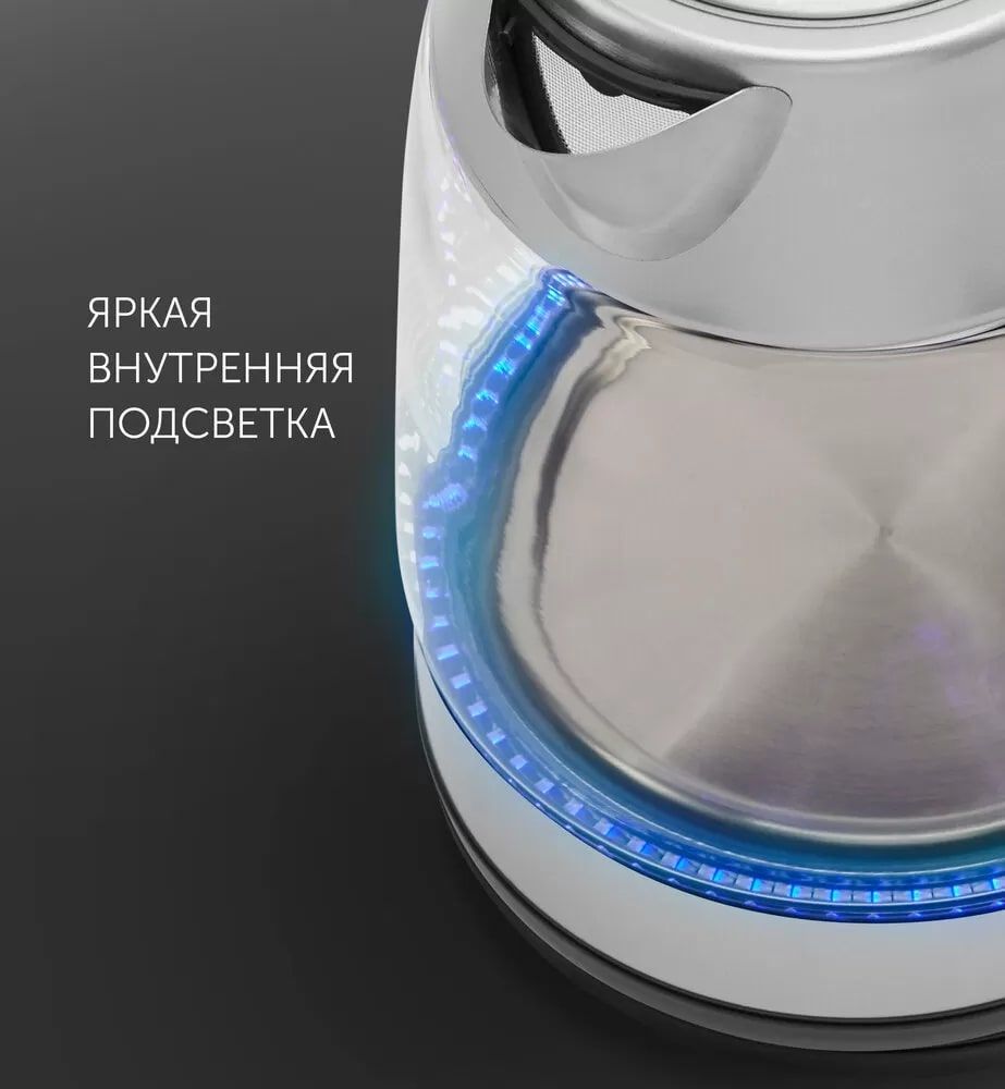 Нам очень понравился чайник, прозрачный всё видно, с подсветкой, и звук не шумный