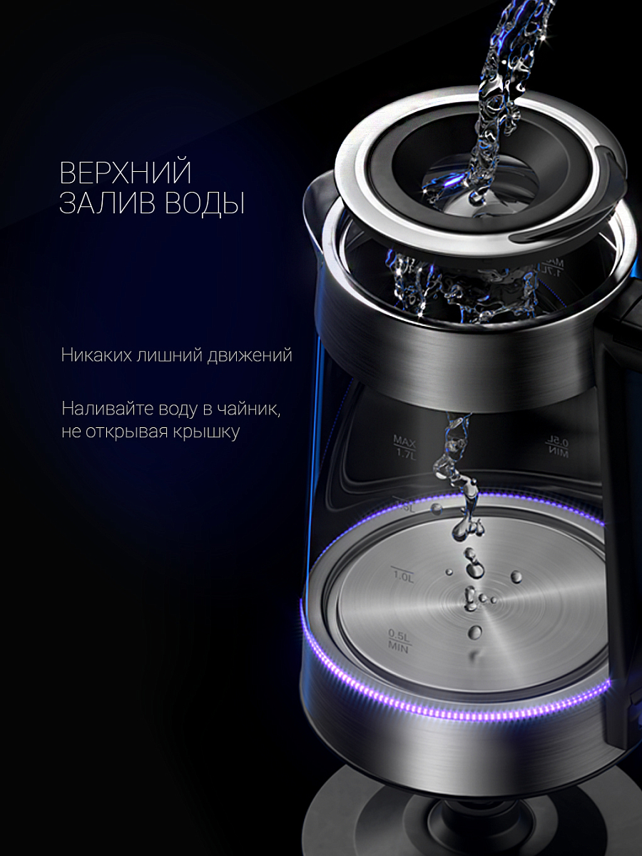 Очень стильный дизайн, быстро и безшумно закипает, нет запаха, очень удобная система залива воды, не надо постоянно снимать крышку, удобно в уходе, т.к крышка съемник, легко мыть