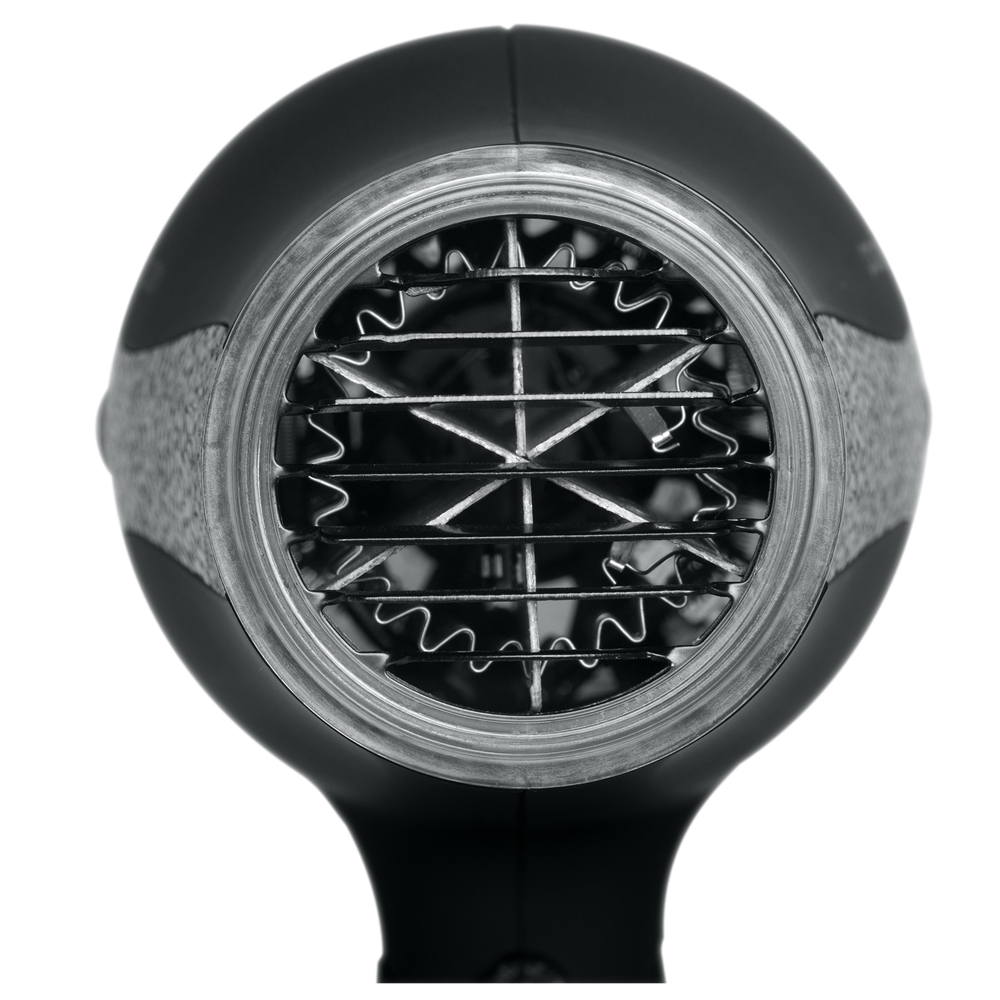 Турмалиновый ионизатор испускает отрицательно заряженные частицы, снимая статическое электричество с волос, облегчая расчесывание волос и сохраняя их внутреннюю влагу. Волосы приобретают