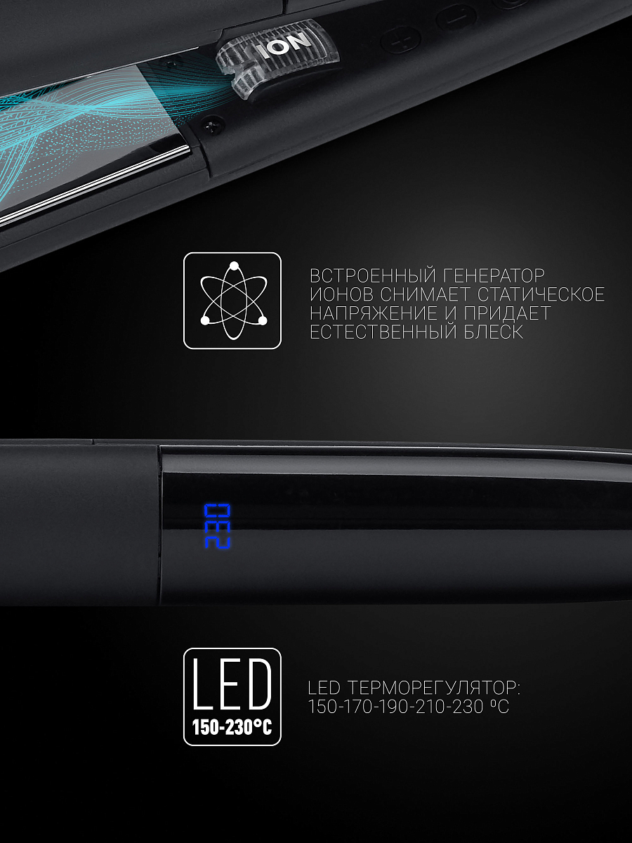 Купила этот выпрямитель и осталась очень довольна. Волосы гладкие и блестят. Сам стайлер очень удобно держать в руке. Использовать его одно удовольствие, можно и выпрямить и накрутить локоны очень быстро. Что понравилось, то что пластины удлинённые (в сравнении в моим прошлым выпрямителем) и рабочая поверхность получается больше, и укладка проходит быстрее. Есть встроенный ионизатор, и регулировка температуры от 150 до 230. Покупкой довольна.