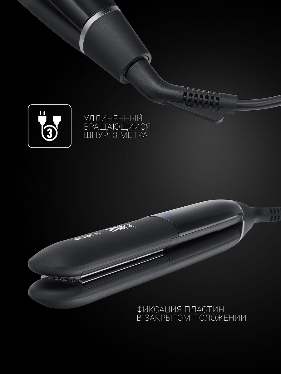 Быстро нагревается , титановое покрытие пластин, длинный шнур , бережное разглаживание , отличный выпрямляет волосы и делает красивые локоны